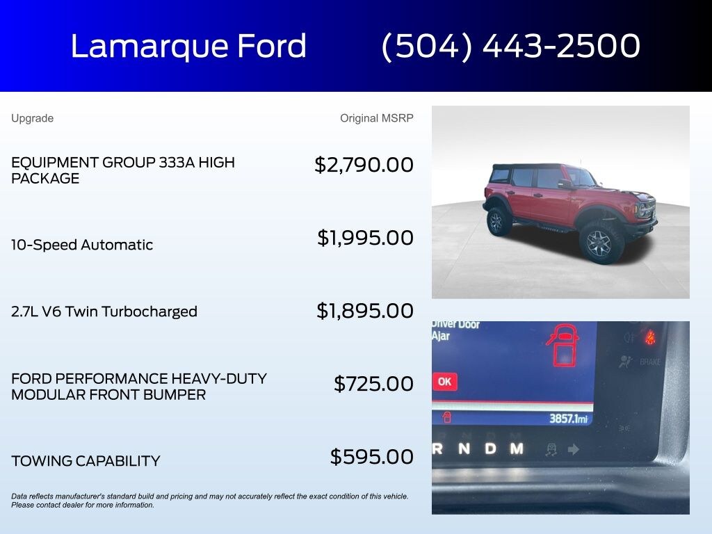 Odometer is 26021 miles below market average! Race Red 2023 Ford Bronco Badlands