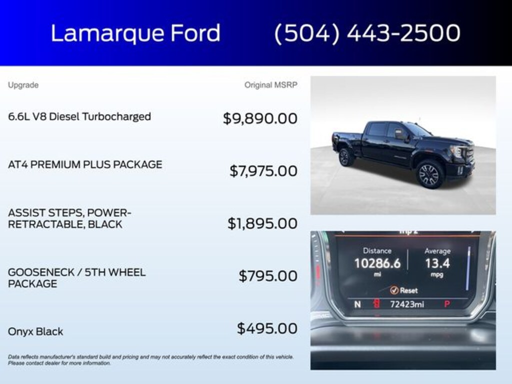 At Lamarque Ford, our customers come firstâ"Every Deal, Every Day, All the Time. Thatâs why weâre honored as Best of New Orleans and celebrated for Customer Satisfaction by J.D. Power and Ford Motor Company. 10-Speed Automatic, 4WD, Jet Black With Kalahari Accents Leather.