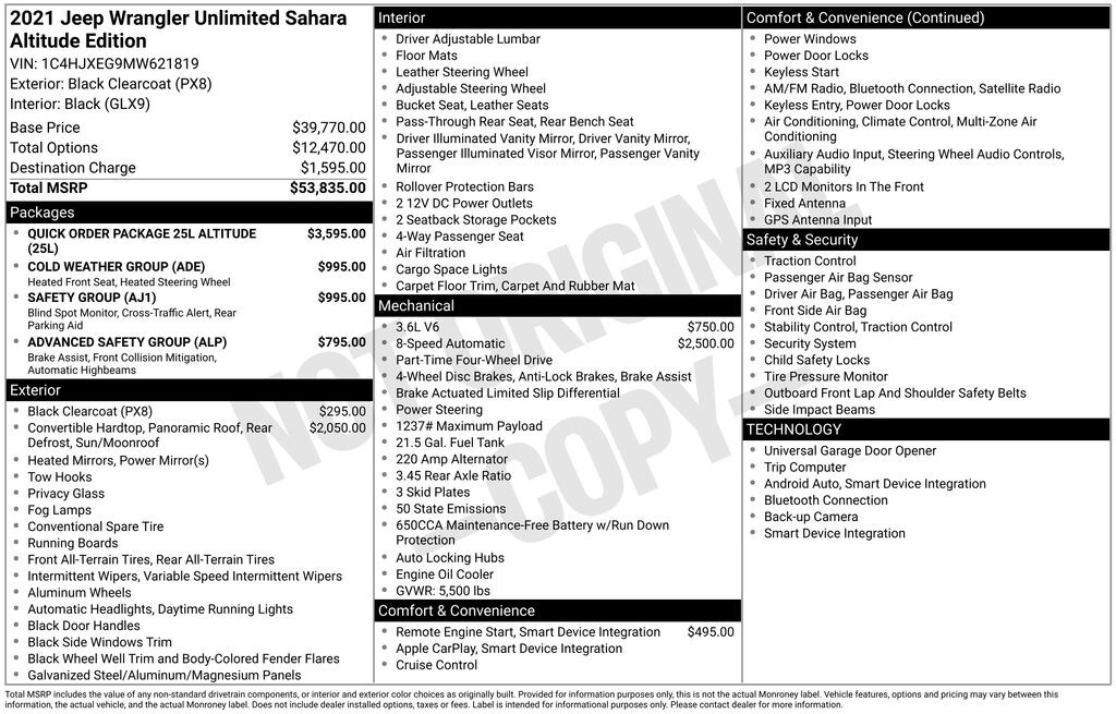 This exceptional Jeep Wrangler has been meticulously inspected and certified, ensuring it meets the highest standards of quality and reliability. With its striking Black exterior and premium Altitude-exclusive touches, this Wrangler is sure to turn heads wherever you go.